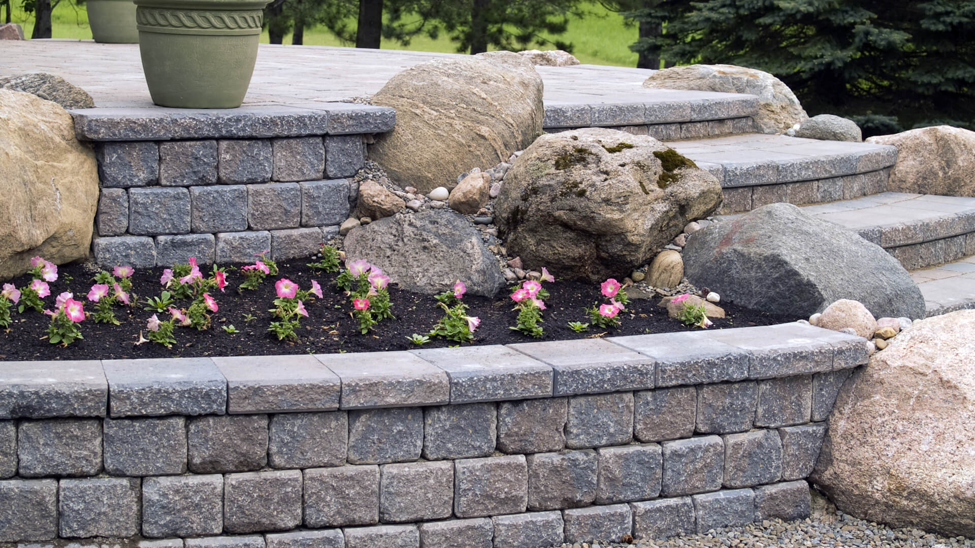 Our natural stone landscaping options can be installed just as easily as traditional concrete sealing solutions. We demonstrate that installing natural stone requires no special skills and it can be laid much like concrete.